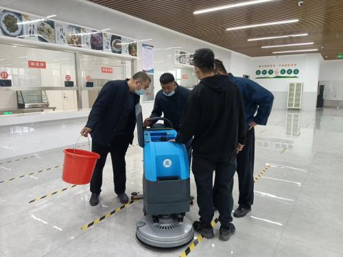 信發(fā)中學(xué)采購鼎潔盛世手推洗地機用于食堂瓷磚地面清洗