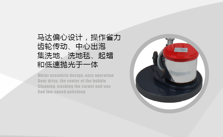 適用場(chǎng)所:特點(diǎn):偏心設(shè)計(jì)、齒輪傳動(dòng)、中心出泡,操作靈活簡(jiǎn)便具有洗地、洗地毯、起蠟和低速拋光等功能此機(jī)可配置PX50電子發(fā)泡箱使用,地毯清潔更方便