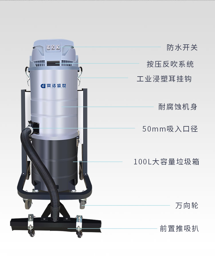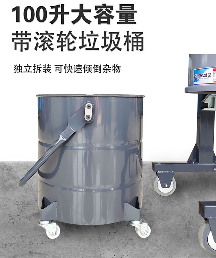 適用場所:工業(yè)專用吸塵器大功率吸力強(qiáng)、干濕兩用、反吹除塵。一站式解決工業(yè)清潔問題,可吸入多種廢料,自帶100升大容量帶滾輪垃圾桶,可獨(dú)立拆裝,可快速傾倒雜物。